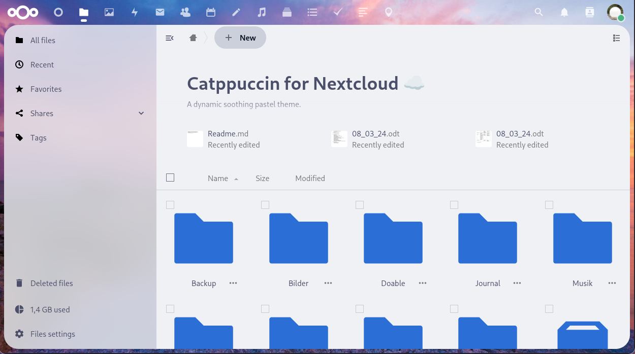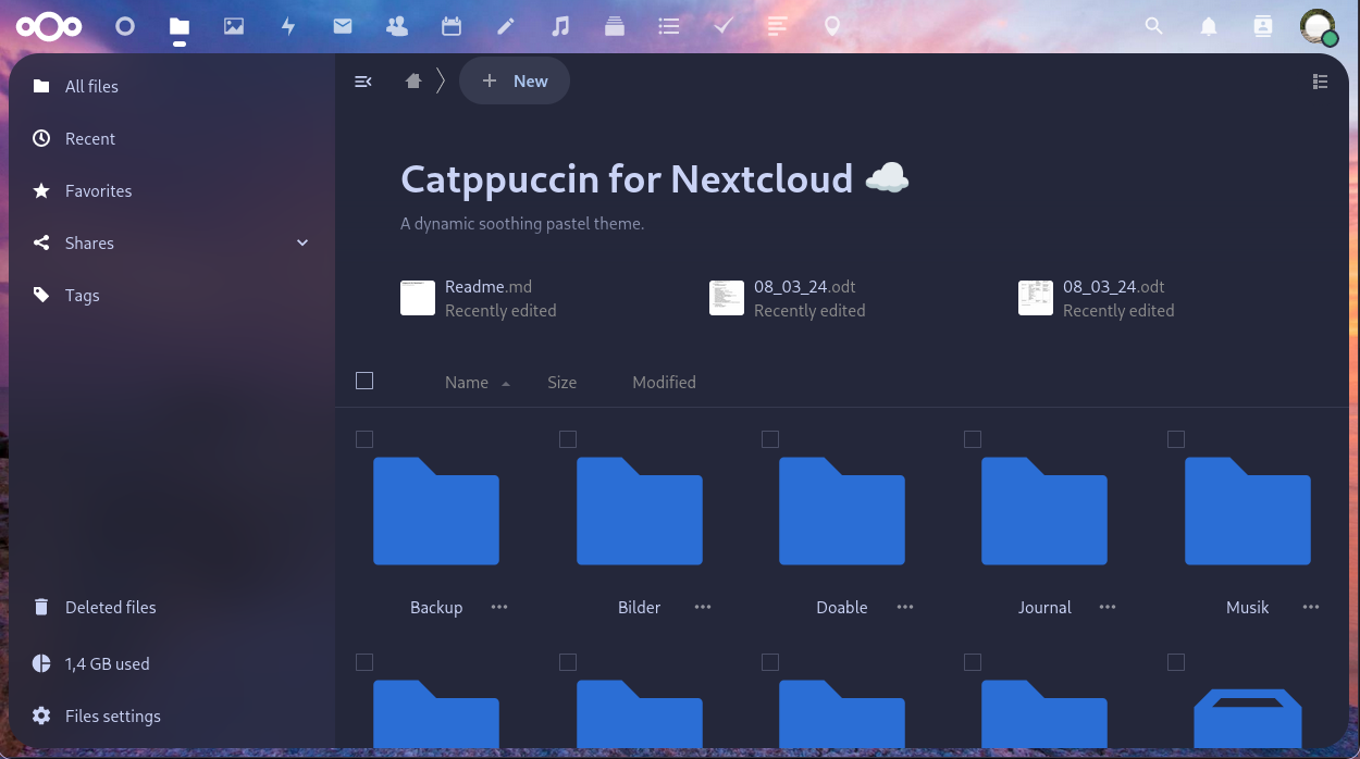 6. Set the Nextcloud accent color to your [favorite color](https://github.com/catppuccin/catppuccin)